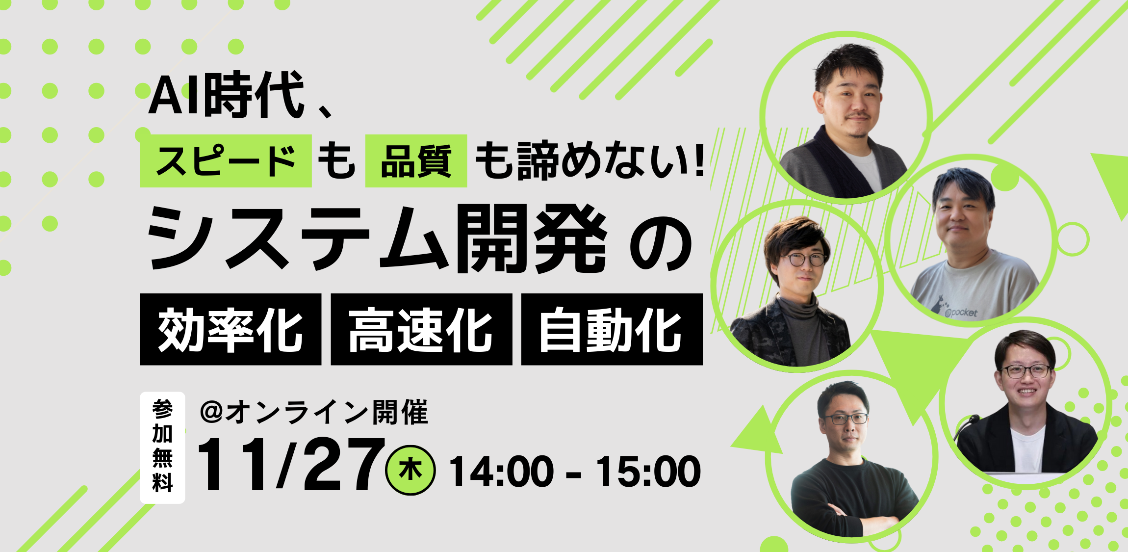 「要件が動く」「レビューが詰まる」「テストに時間を取られる」。本セミナーでは、生成AIや自動化の活用で設計・実装・テストのムダを削り、効率化・リードタイム短縮と品質担保を両立する方法を、各領域のトッププレイヤーから解説します。